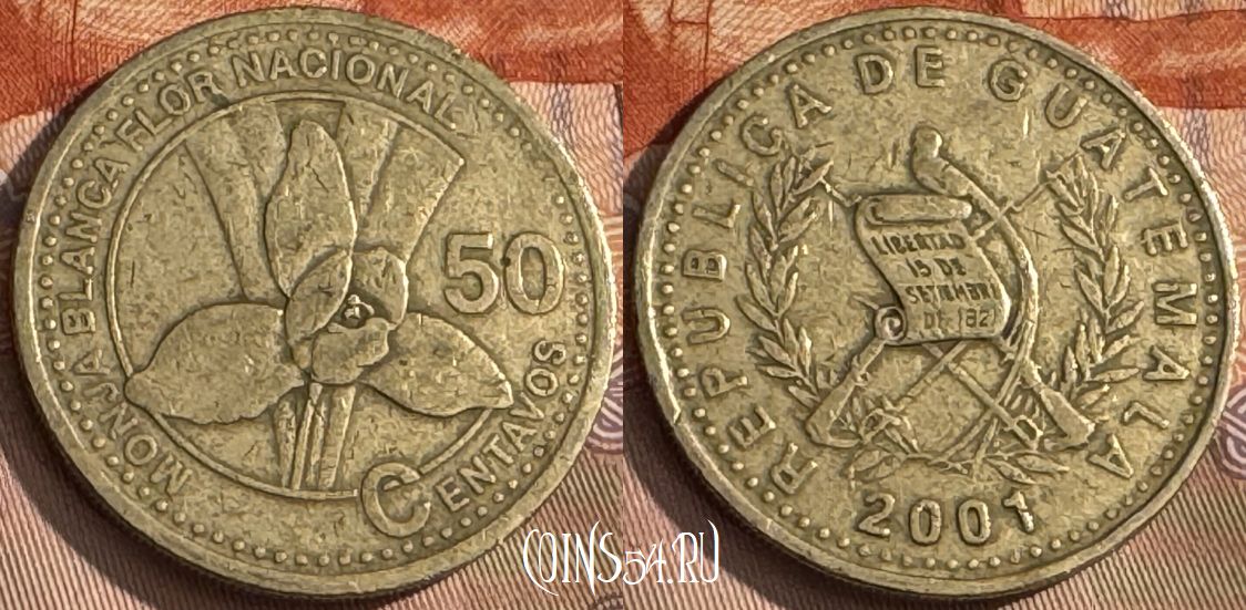 Гватемала 50 сентаво 2001 года, KM# 283, 058s-147
