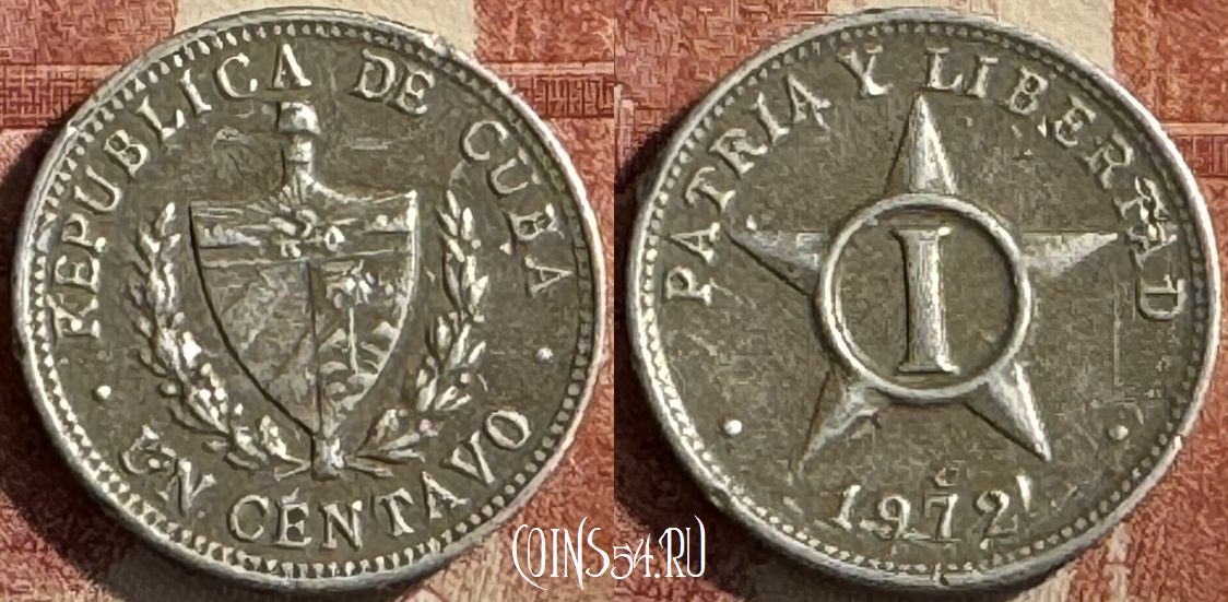 Куба 1 сентаво 1972 года, KM# 33.1, 443s-016