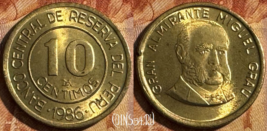 Перу 10 сентимо 1986 года, KM# 293, 514s-030