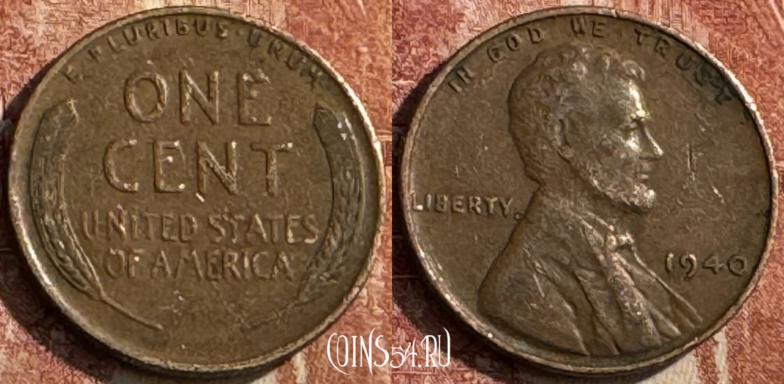 США 1 цент 1940 года, KM# 132, 048s-089