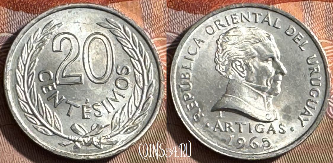 Уругвай 20 сентесимо 1965 года, KM# 44, 504s-009