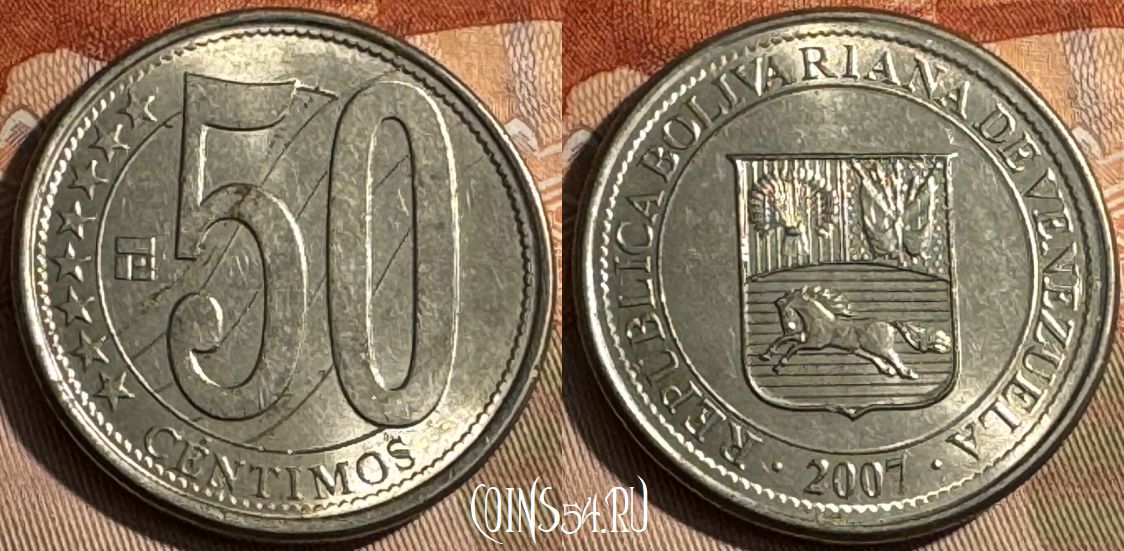 Венесуэла 50 сентимо 2007 года, Y# 92, 484s-111