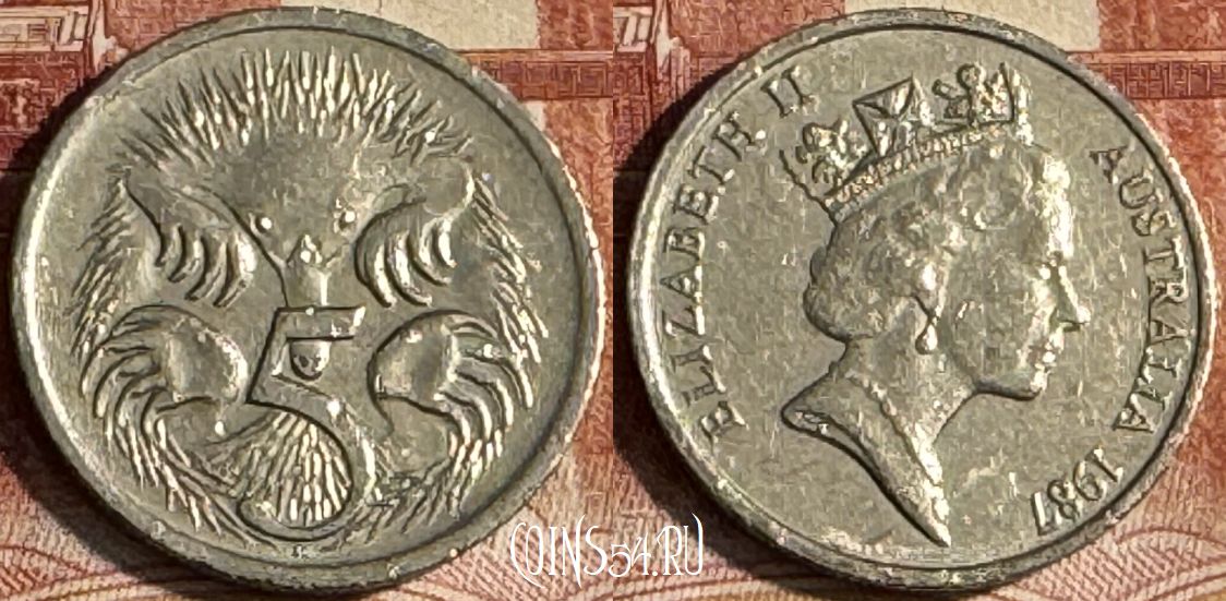 Австралия 5 центов 1987 года, KM# 80, 185t-105