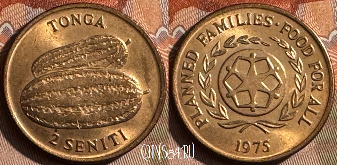 Тонга 2 сенити 1975 года, KM# 43, 504s-043