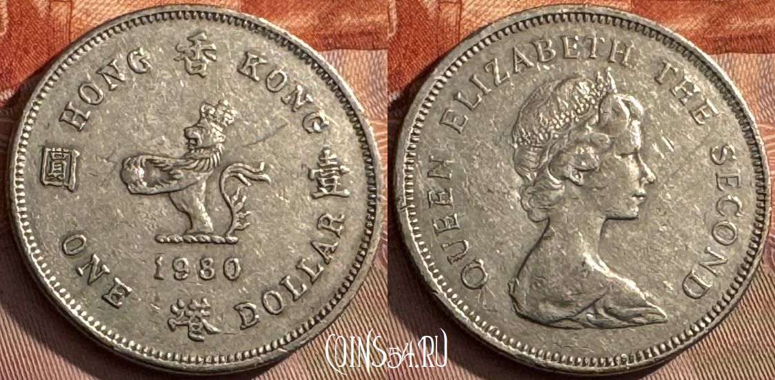 Гонконг 1 доллар 1980 года, KM# 43, 127t-121