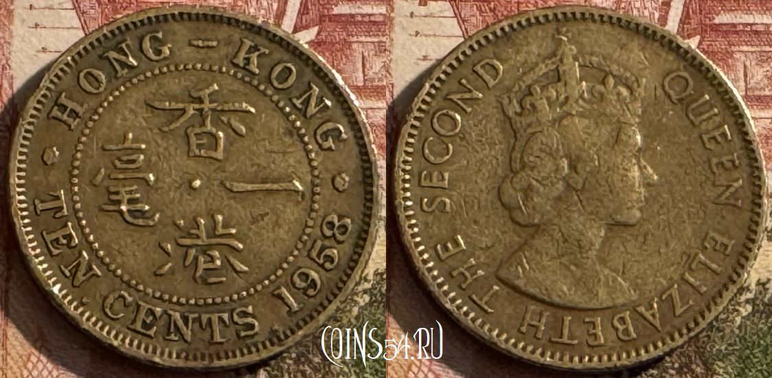 Гонконг 10 центов 1958 года, KM# 28.1, 155t-081