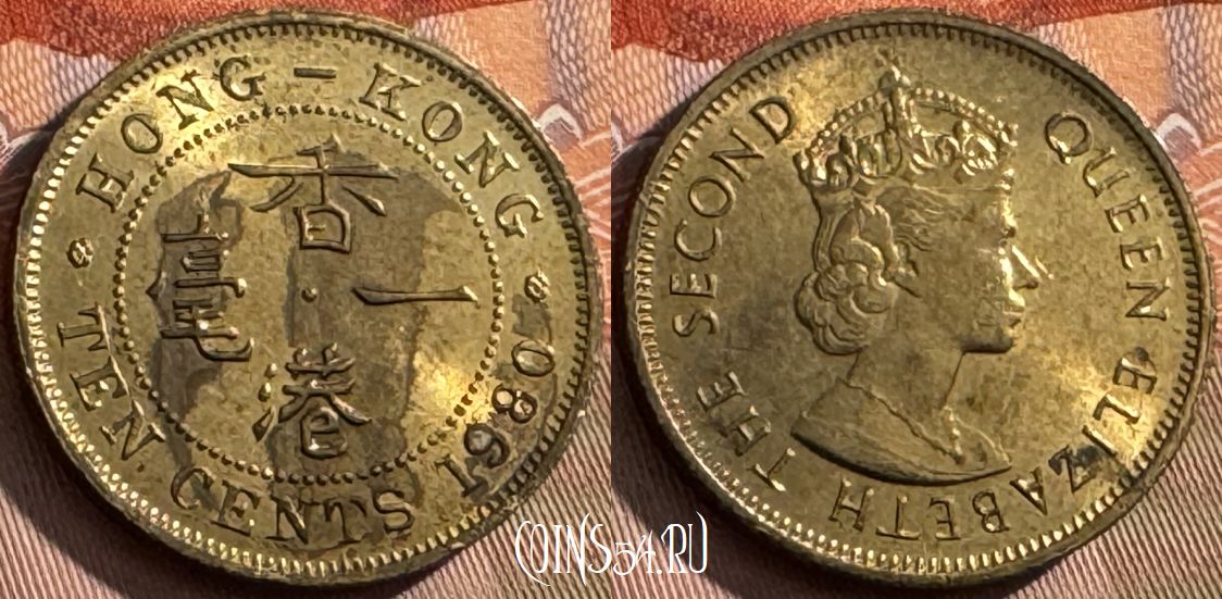 Гонконг 10 центов 1980 года, KM# 28.3, 128t-100