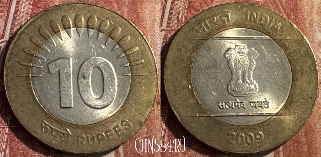 Индия 10 рупий 2009 года, KM# 363, 474s-015