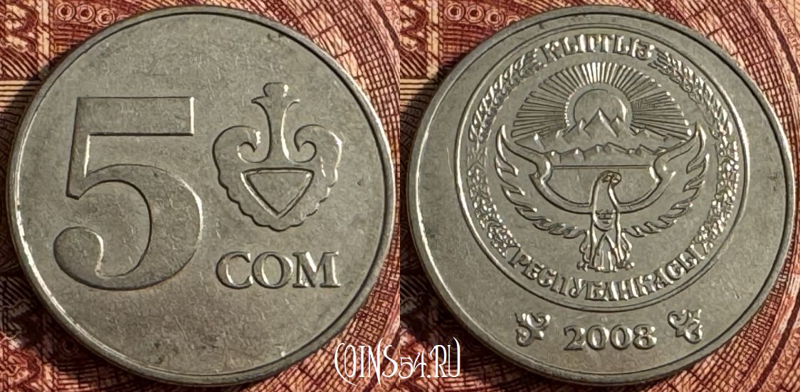 Киргизия 5 сомов 2008 года, KM# 16, 363s-099