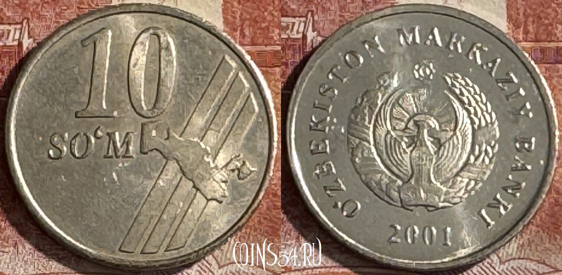 Узбекистан 10 сумов 2001 года, KM# 14, 506s-095
