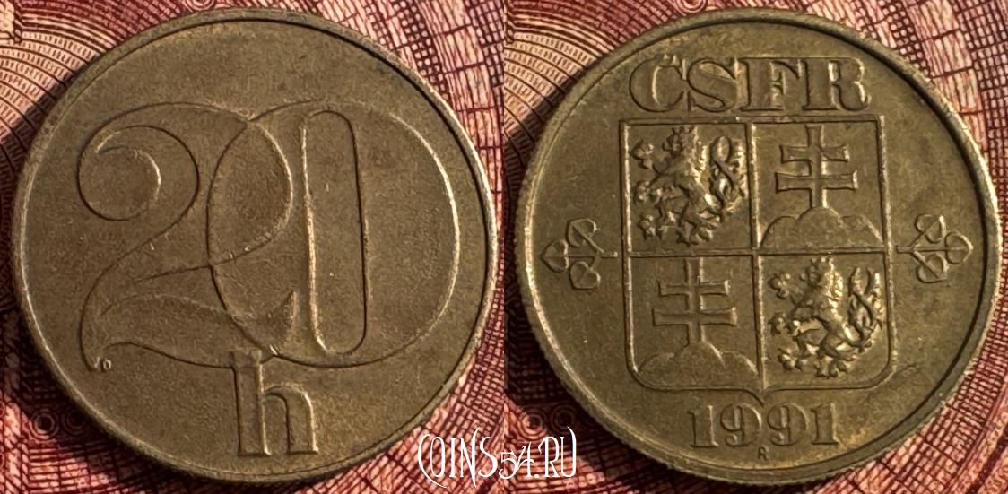 Чехословакия 20 геллеров 1991 года, KM# 143, 361s-025