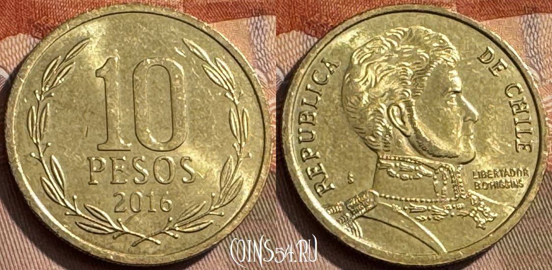 Чили 10 песо 2016 года, KM# 228, 304s-111