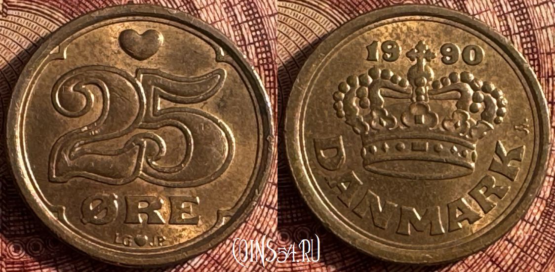 Дания 25 эре 1990 года, KM# 868, 359s-030