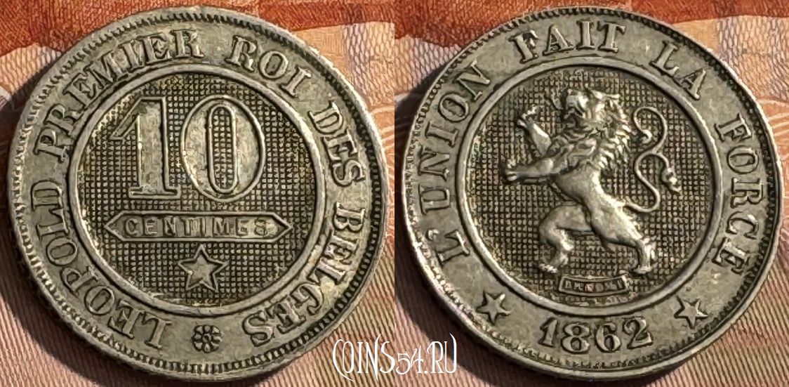Бельгия 10 сантимов 1862 года, KM# 22, 512s-098
