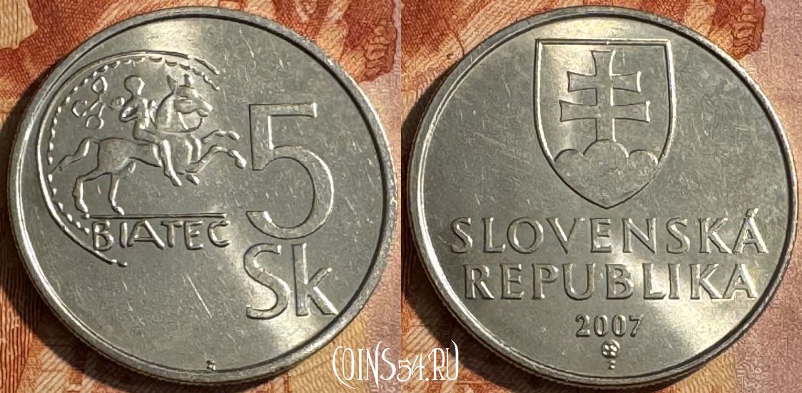 Словакия 5 крон 2007 года, KM# 14, 454s-072
