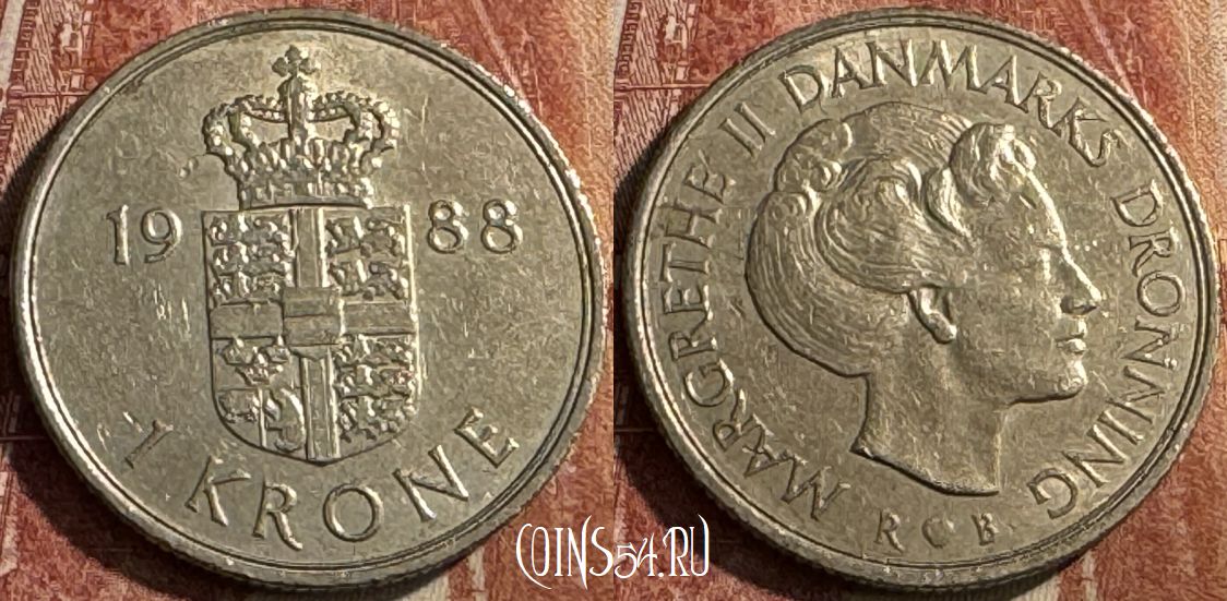 Дания 1 крона 1988 года, KM# 862, 473s-102
