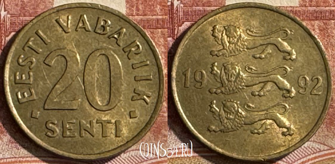 Эстония 20 сентов 1992 года, KM# 23, 448s-003