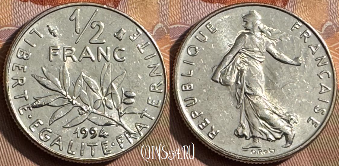 Франция 1/2 франка 1994 года, KM# 931, 379s-101