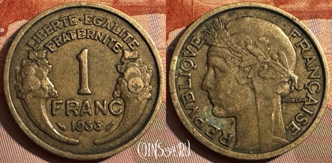 Франция 1 франк 1933 года, KM# 885, 377s-022