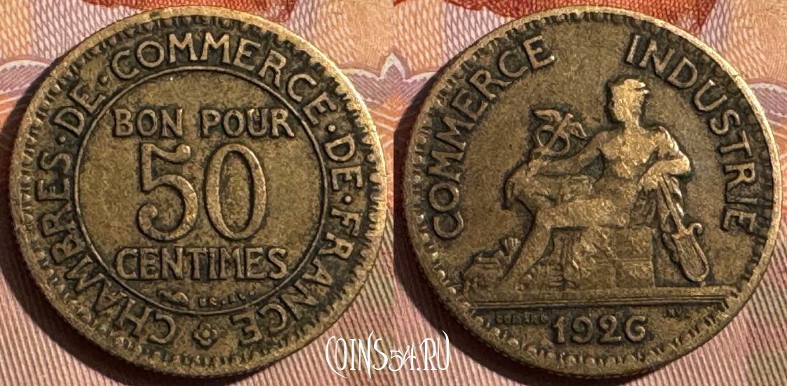 Франция 50 сантимов 1926 года, KM# 884, 375s-050