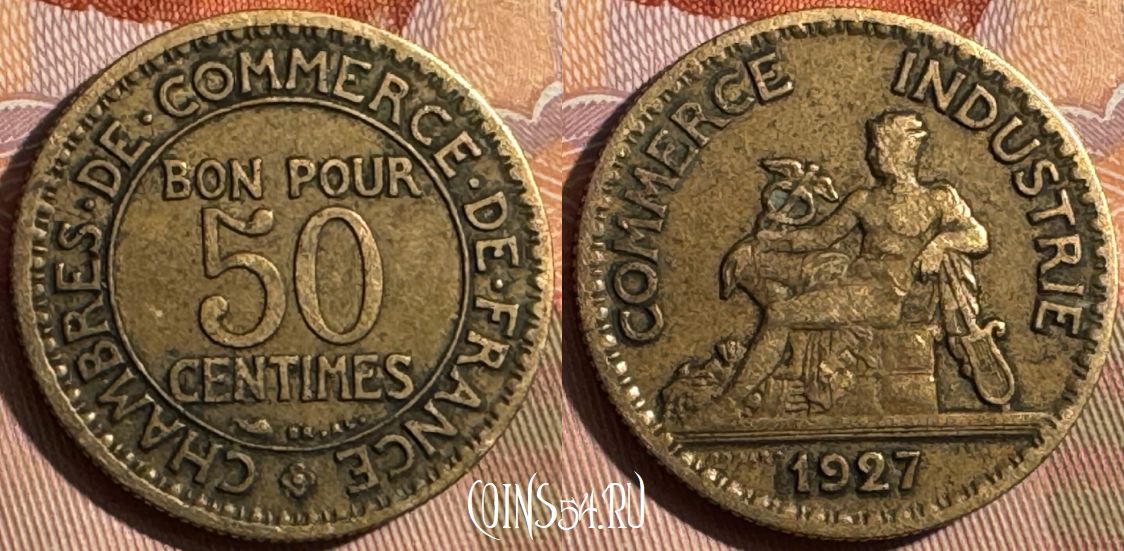 Франция 50 сантимов 1927 года, KM# 884, 373s-125