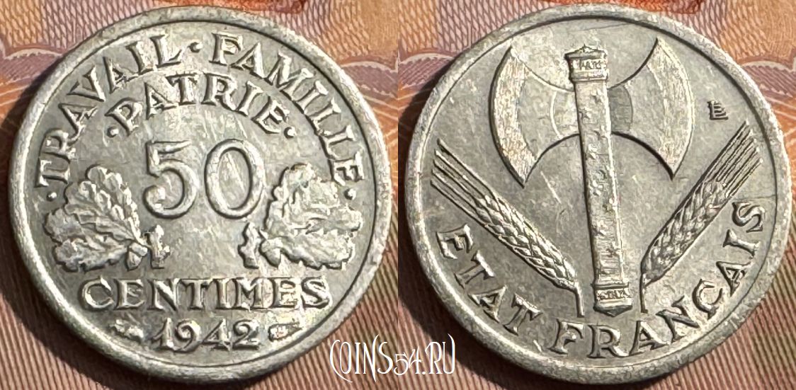 Франция 50 сантимов 1942 года, KM# 914, 375s-038