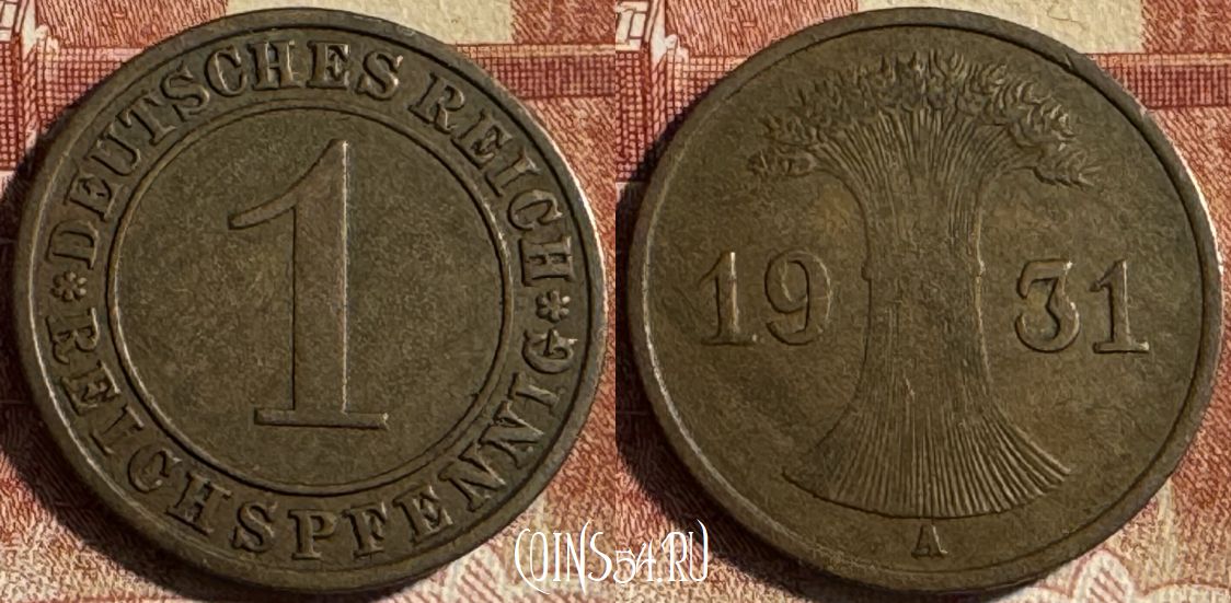 Германия 1 рейхспфенниг 1931 года A, KM# 37, 452s-040