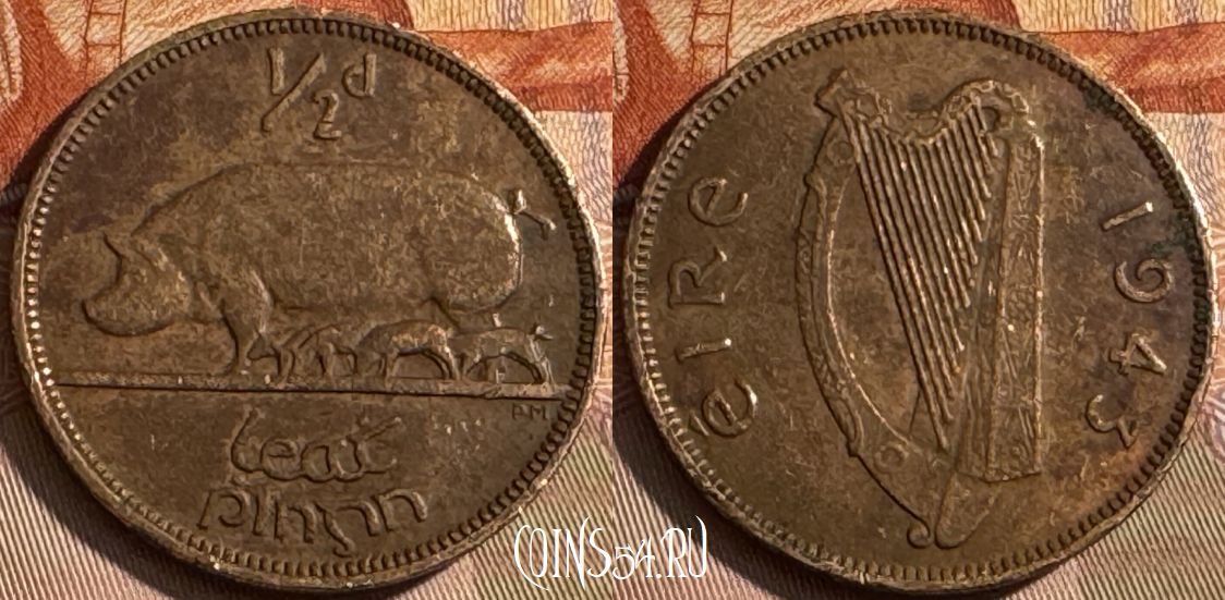 Ирландия 1/2 пенни 1943 года, KM# 10, 071t-128