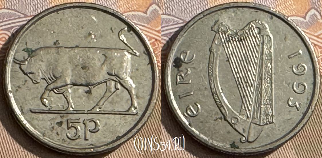 Ирландия 5 пенсов 1993 года, KM# 28, 047s-093
