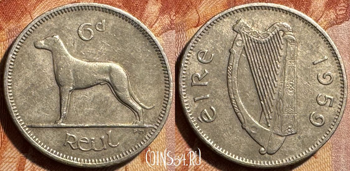 Ирландия 6 пенсов 1959 года, KM# 13а, 502s-046