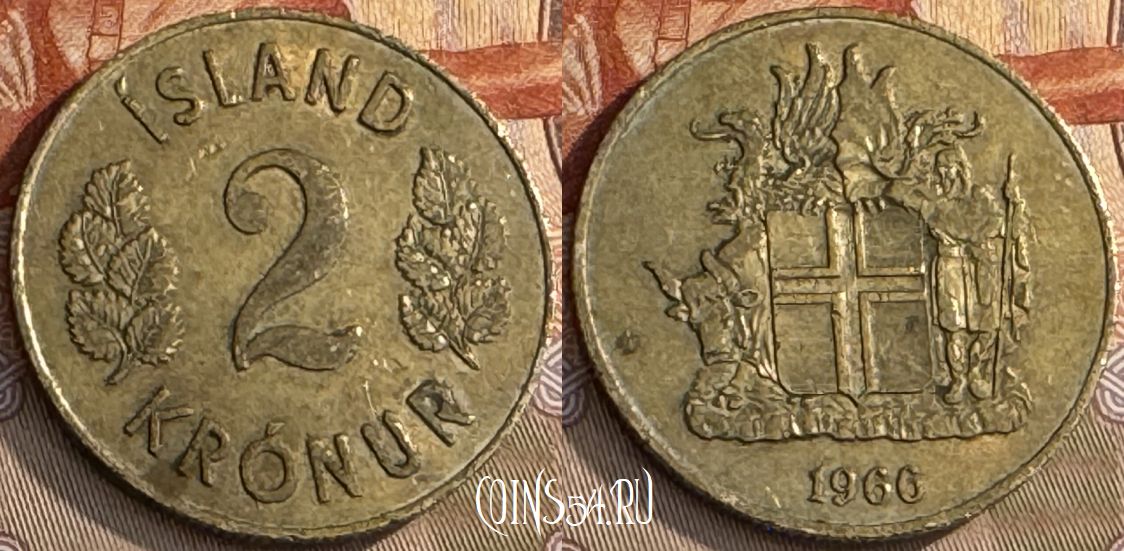 Исландия 2 кроны 1966 года, KM# 13a.1, 238t-084