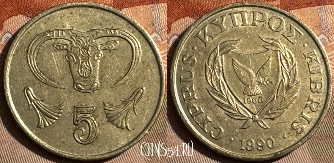 Кипр 5 центов 1990 года, KM# 55.2, 482s-005