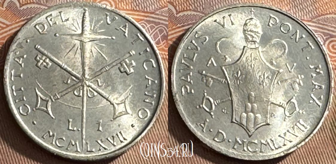 Ватикан 1 лира 1967 года, KM# 92, 516s-019