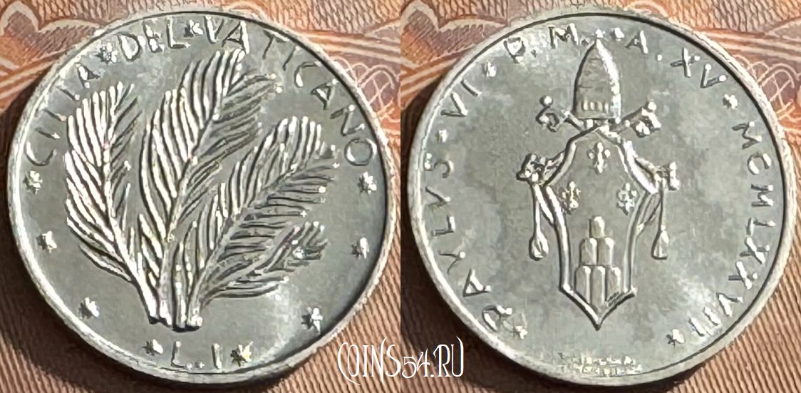 Ватикан 1 лира 1977 года, KM# 116, 516s-089