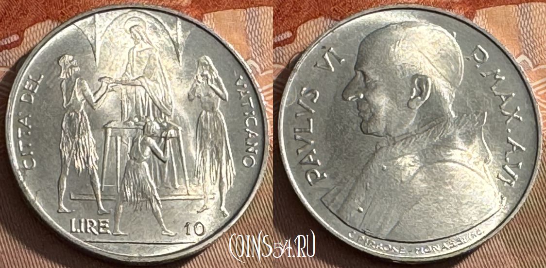 Ватикан 10 лир 1968 года, KM# 103, 516s-051