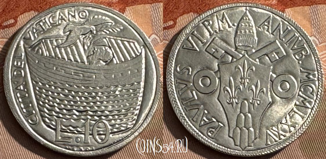 Ватикан 10 лир 1975 года, KM# 127, 516s-029