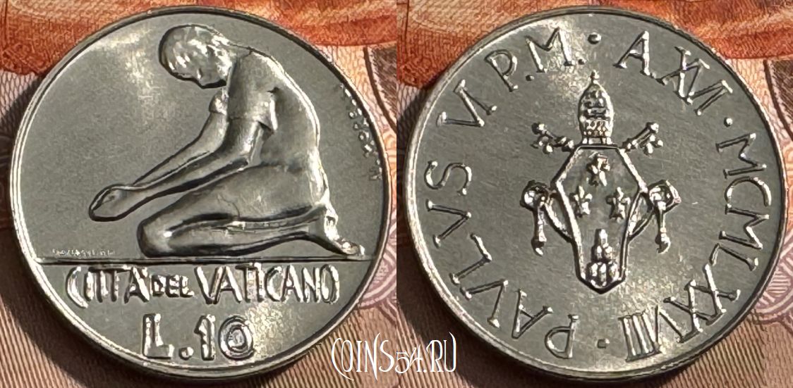 Ватикан 10 лир 1978 года, KM# 134, 515s-127