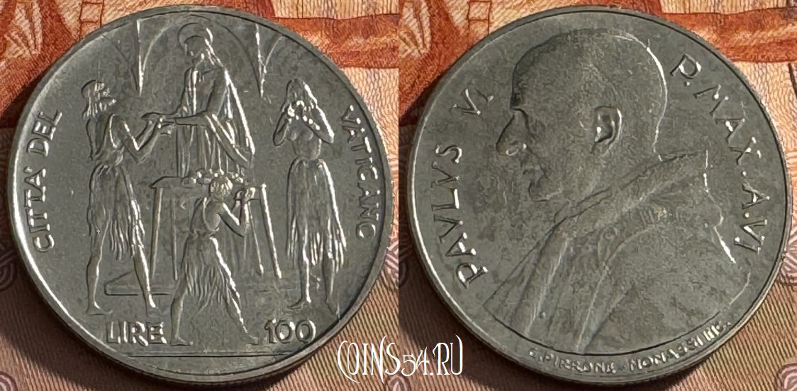 Ватикан 100 лир 1968 года, KM# 106, 516s-048