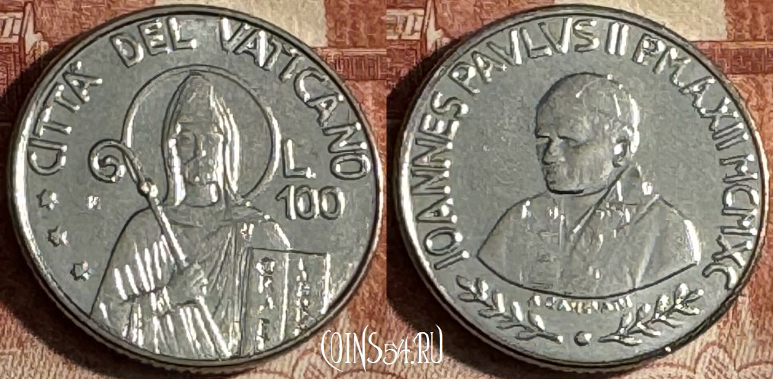 Ватикан 100 лир 1990 года, KM# 223, 517s-030