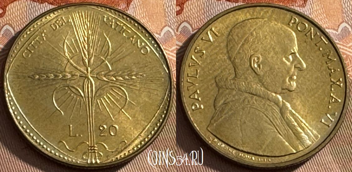 Ватикан 20 лир 1968 года, KM# 104, 516s-050