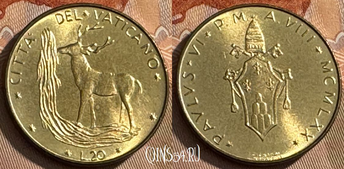 Ватикан 20 лир 1970 года, KM# 120, 516s-079