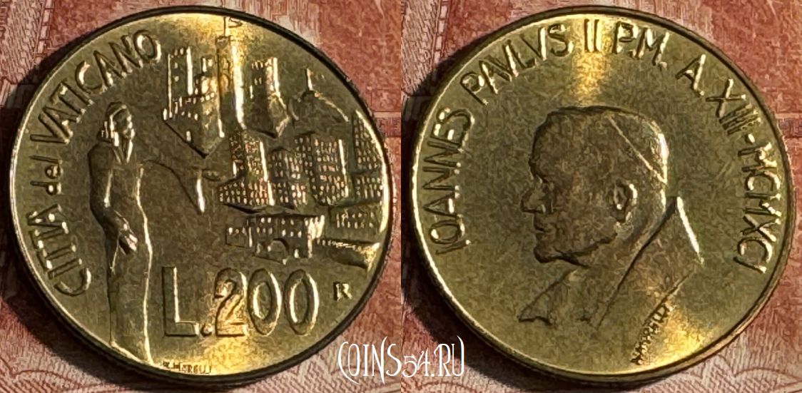 Ватикан 200 лир 1991 года, KM# 232, 517s-036