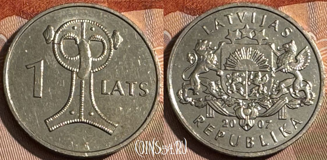 Латвия 1 лат 2007 года, Стилизированая сова, KM# 86, 509s-142