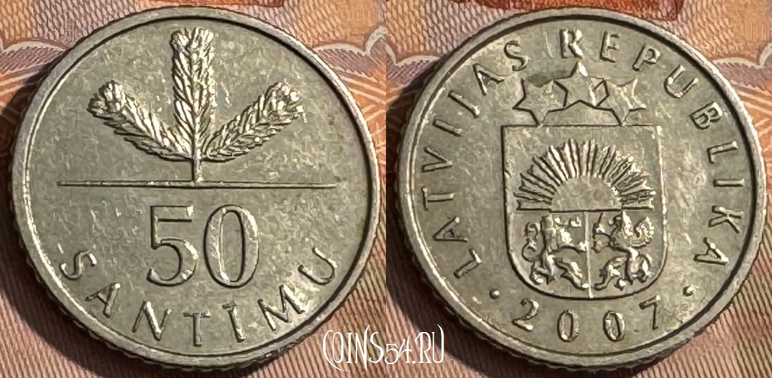 Латвия 50 сантимов 2007 года, KM# 13, 512s-120