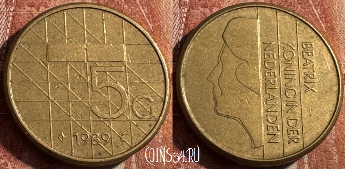 Нидерланды 5 гульденов 1989 года, KM# 210, 041s-010