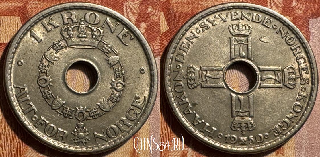 Норвегия 1 крона 1950 года, KM# 385, 502s-015