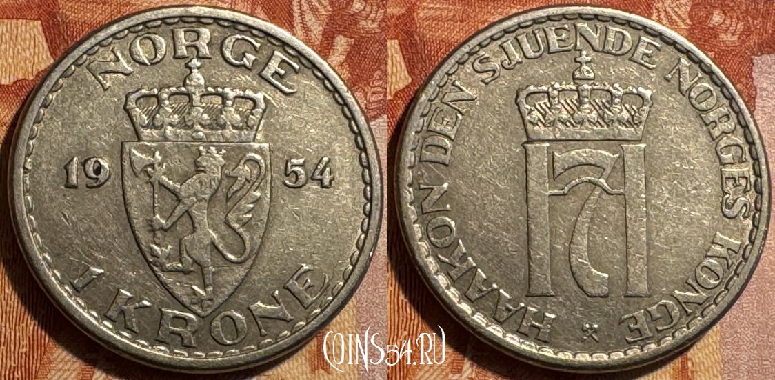Норвегия 1 крона 1954 года, KM# 397, 502s-011