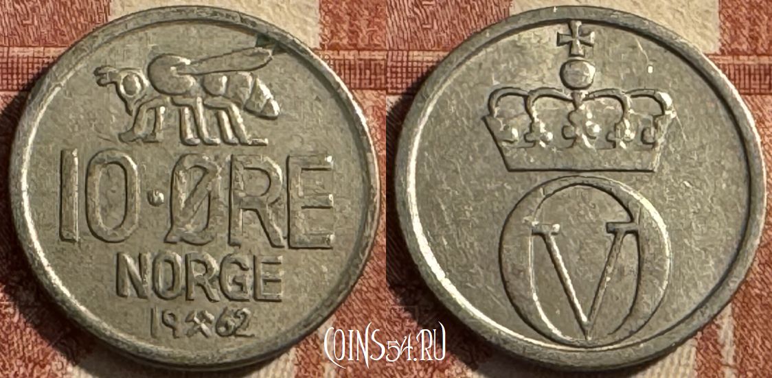 Норвегия 10 эре 1962 года, KM# 411, 490s-008