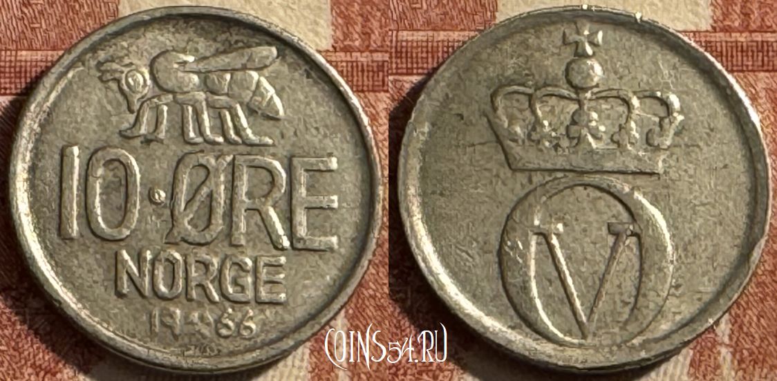 Норвегия 10 эре 1966 года, KM# 411, 490s-020