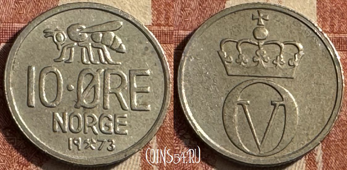 Норвегия 10 эре 1973 года, KM# 411, 489s-116
